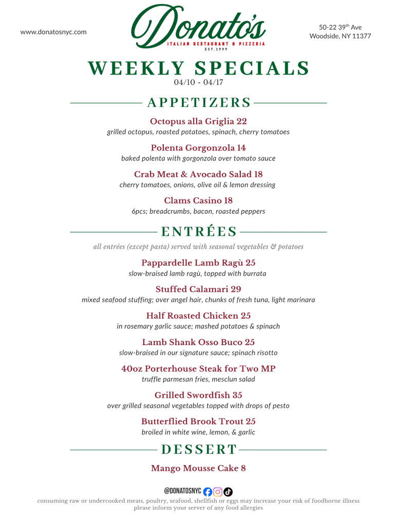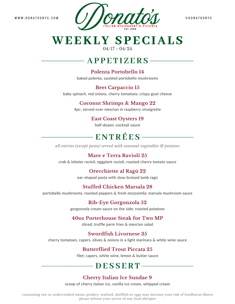 All entrees served over a choice of pasta in the same sauce: spaghetti, linguine, or ziti-